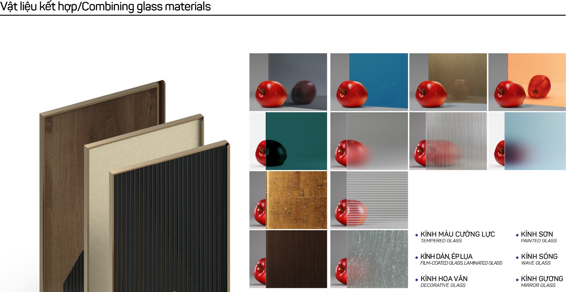 Có thể linh hoạt kết hợp với nhiều loại kính và vật liệu khác nhau, tạo ra các biến thể thiết kế phong phú. Điều này giúp nó phù hợp cho nhiều ứng dụng khác nhau như tủ rượu, tủ trưng bày, tủ quần áo, tủ bếp,....